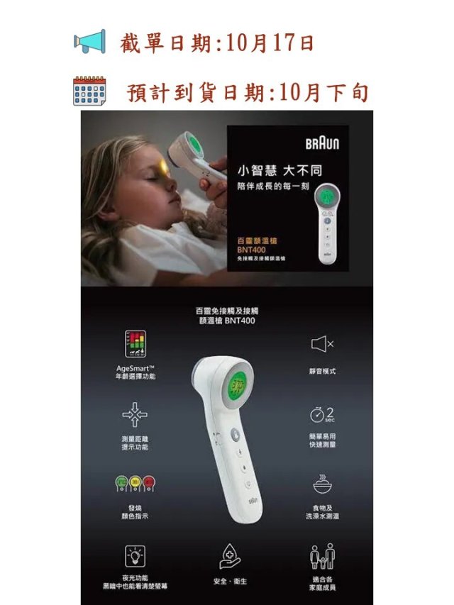 Braun百靈免接觸額溫槍 BNT400 (白色)