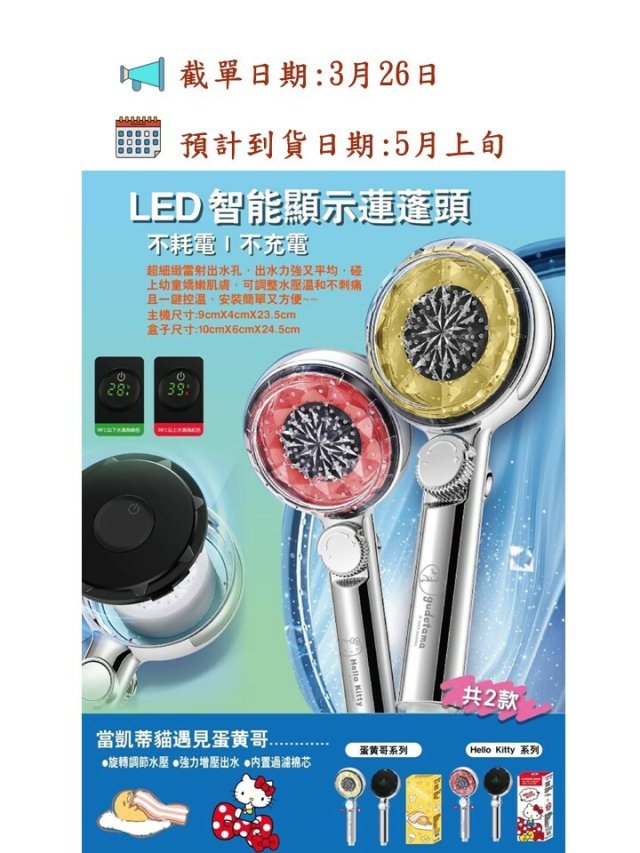 台灣 Sanrio LED 智能顯示蓮蓬頭
