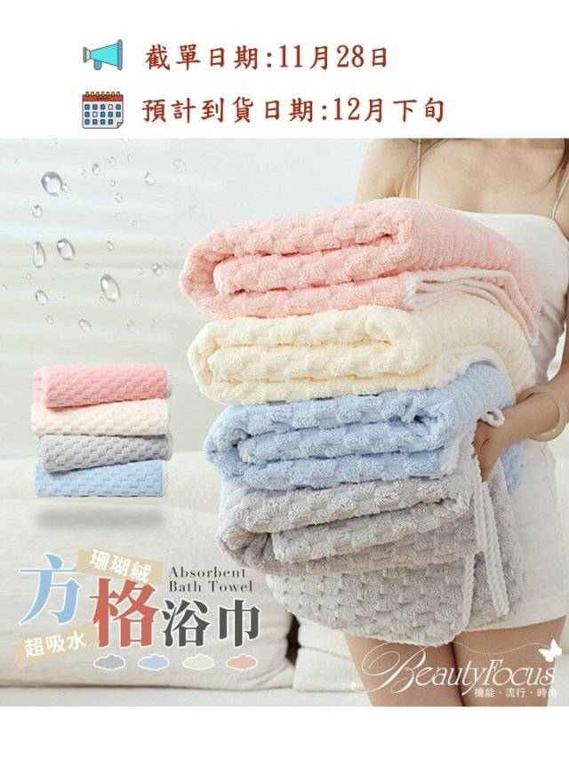 超吸水 珊瑚絨方格浴巾