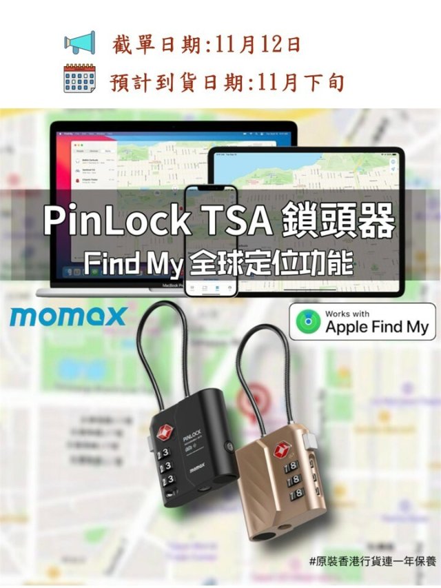 Momax PinLock TSA 鎖頭 Find My 全球定位器 BR15D/L2