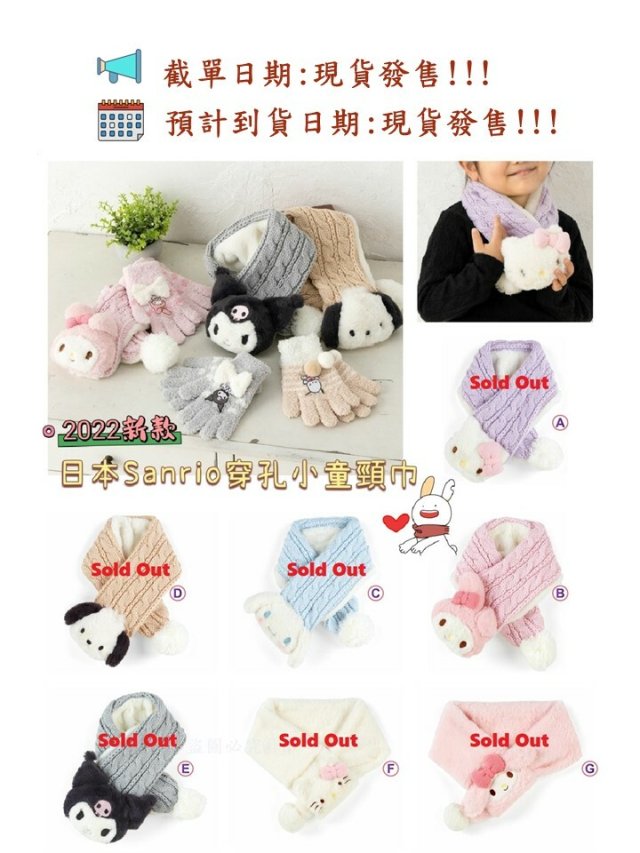 日本Sanrio穿孔小童頸巾 2022年新款