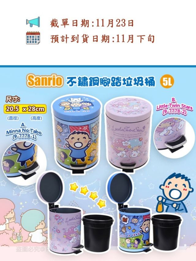 Sanrio 不鏽鋼腳踏垃圾桶 (5L)