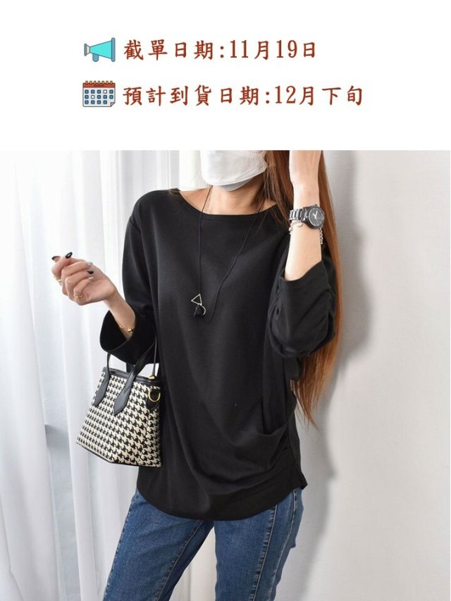 歐妮 優雅圓領燈籠七分袖T