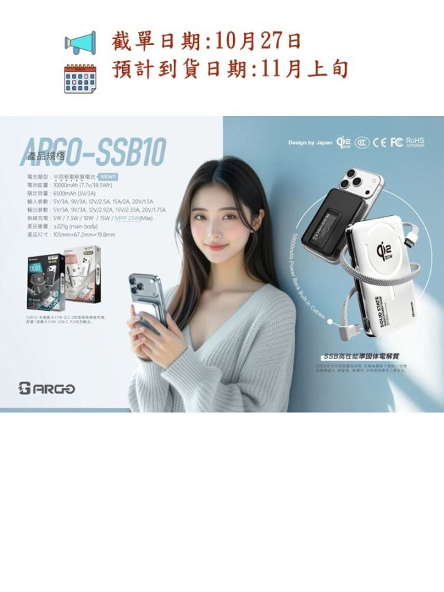 Argo新款 SSB10 Qi2.2 35w Power bank