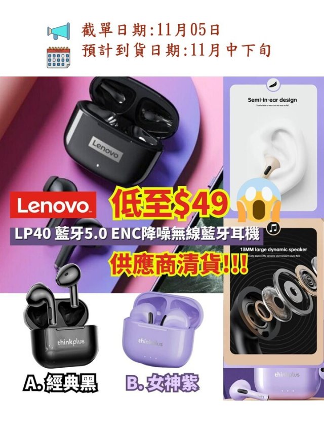 Lenovo | LP40 藍牙5.0 ENC降噪無線藍牙耳機