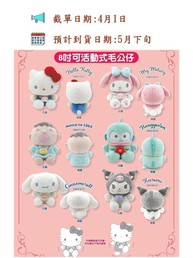 Sanrio 8吋可活動式毛公仔