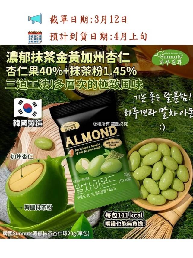 韓國Sunnuts濃郁抹茶杏仁球20g(1套5包)