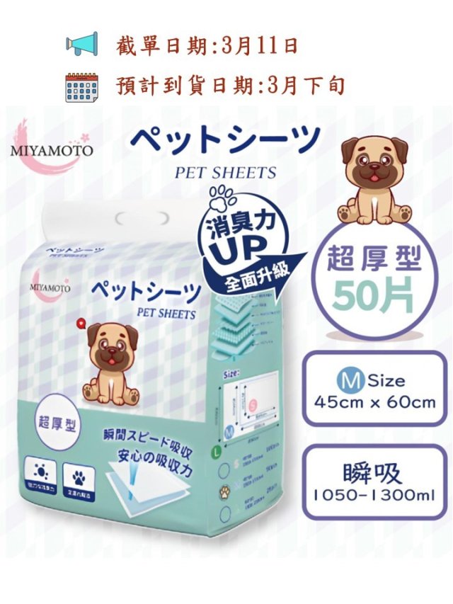 Miyamoto - 超厚型寵物尿墊M碼 50片 (45cm x 60cm)