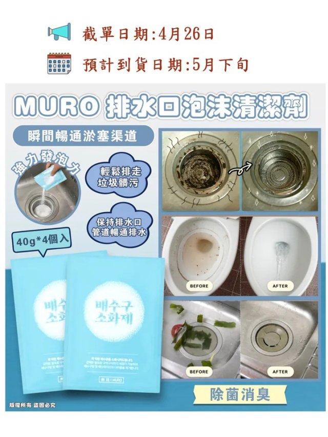韓國 MURO 排水口泡沫清潔劑 (1盒4包)(2盒/套)