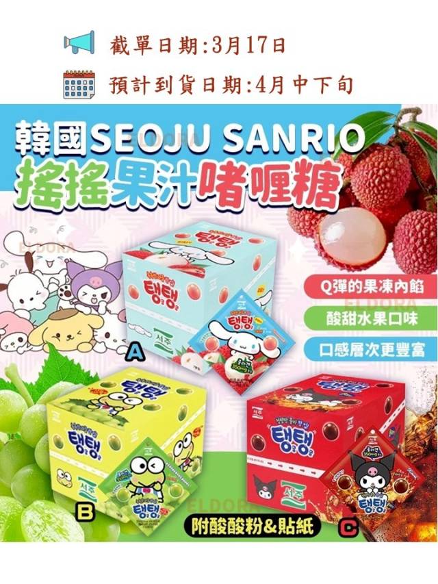 韓國SEOJU Sanrio搖搖果汁啫喱糖(附酸酸粉&貼紙)(7包/套)