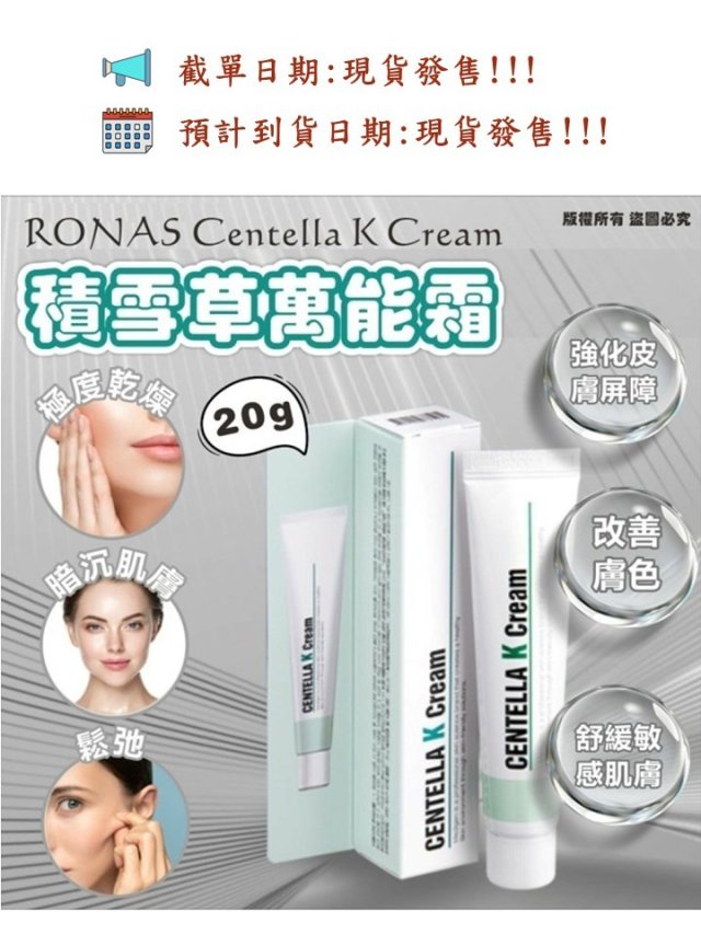 韓國 RONAS Centella K Cream 積雪草K萬能霜 20g