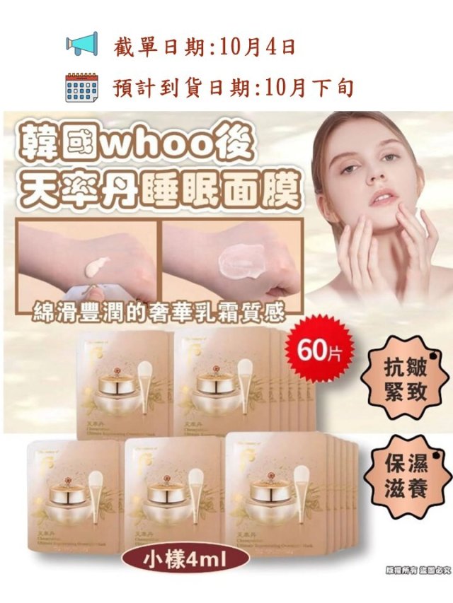 韓國🇰🇷Whoo后 天率丹極致再生睡眠面膜4ml (1套60小片)