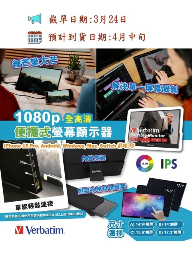 Verbatim 便攜式螢幕顯示器系列