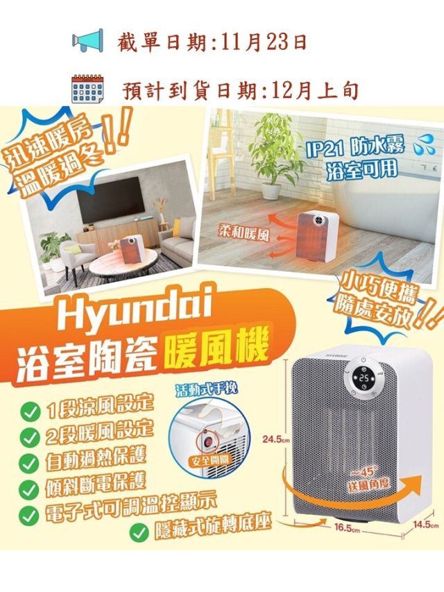HYUNDAI 家居浴室陶瓷暖風機 (KTP-1500586B)