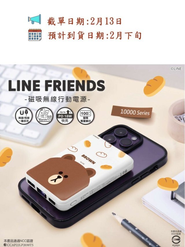 GARMMA LINE FRIENDS 磁吸無線行動電源