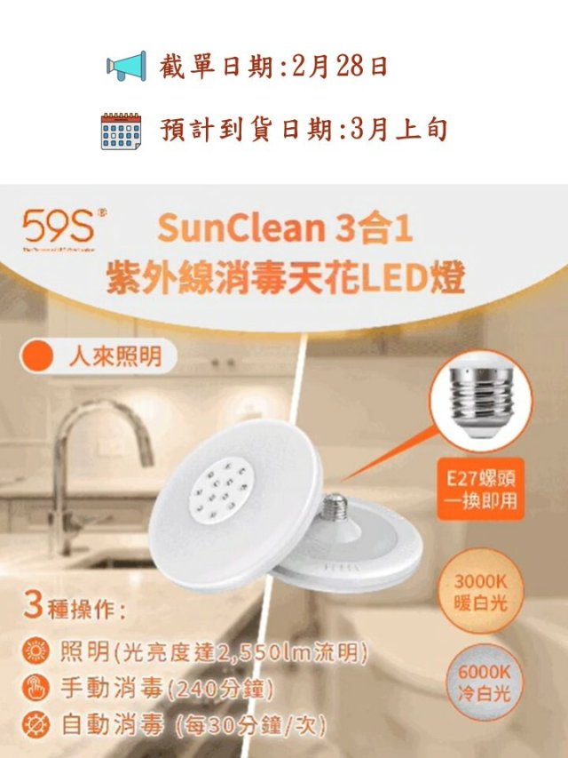 59S Sunclean 紫外線消毒天花 LED燈