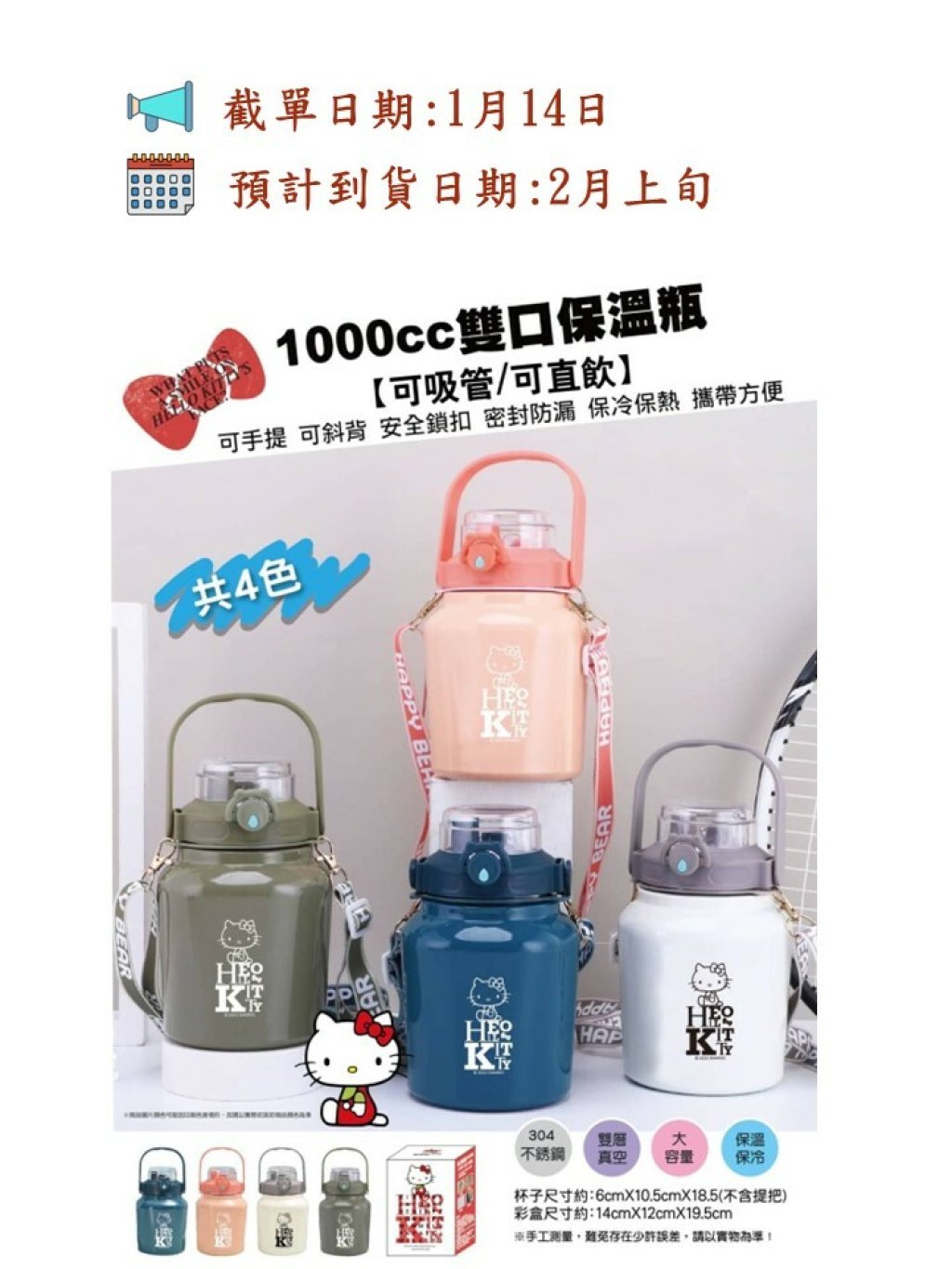 🟡台灣 Sanrio Hello Kitty 1000ml 304不鏽鋼雙口保溫壺🟡