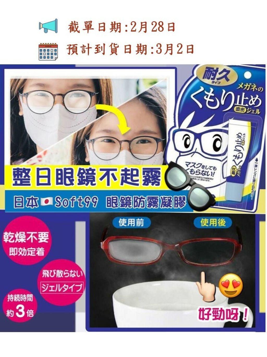 不過啱啱試用咗呢支防霧凝膠真係好正👍🏻👍🏻,用嚟抹眼鏡之後👓👓,無論戴口罩或者出入冷氣地方副眼鏡都唔會白濛濛一片😍😍