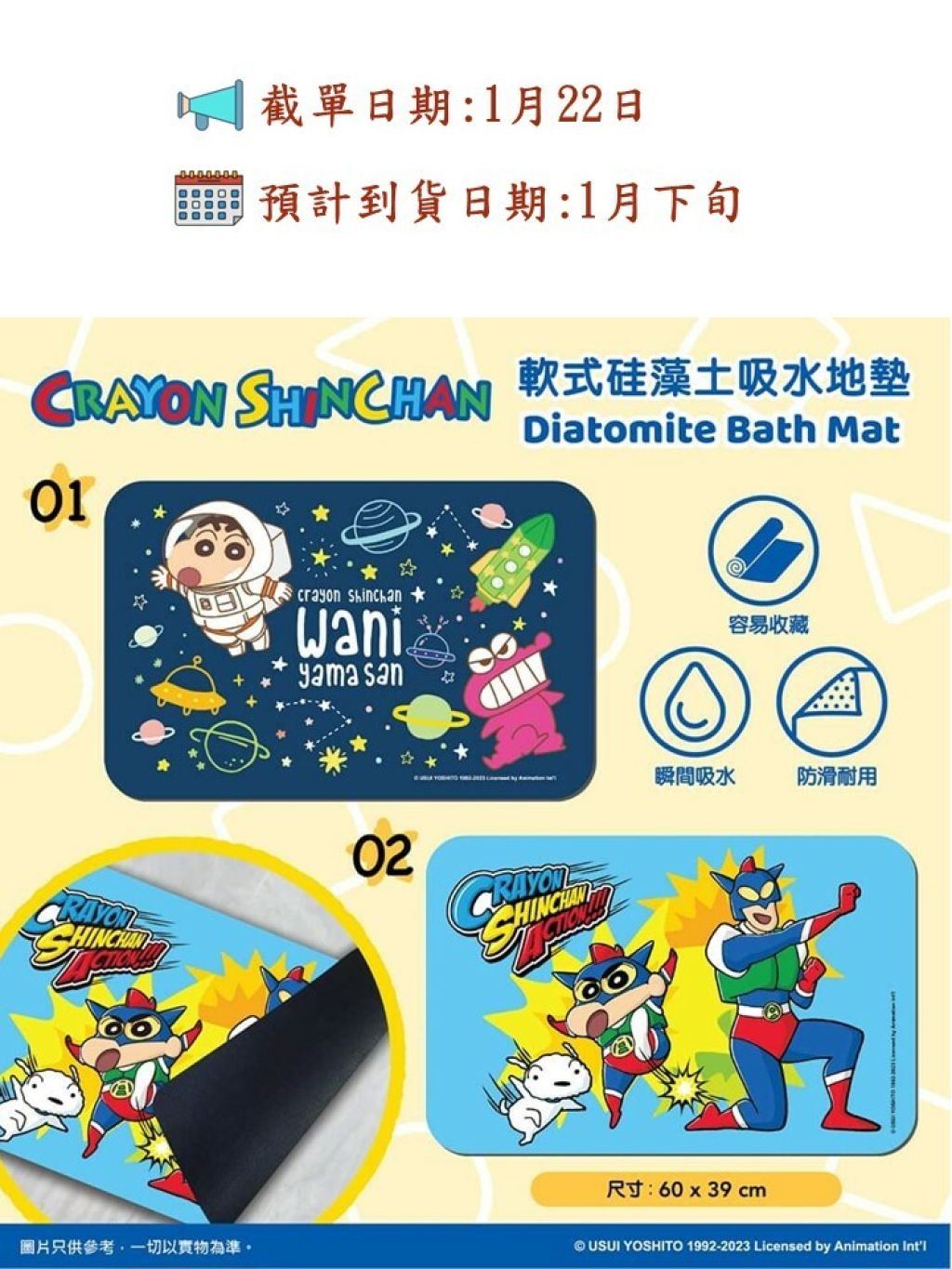 蠟筆小新全新軟式硅藻土吸水地氈