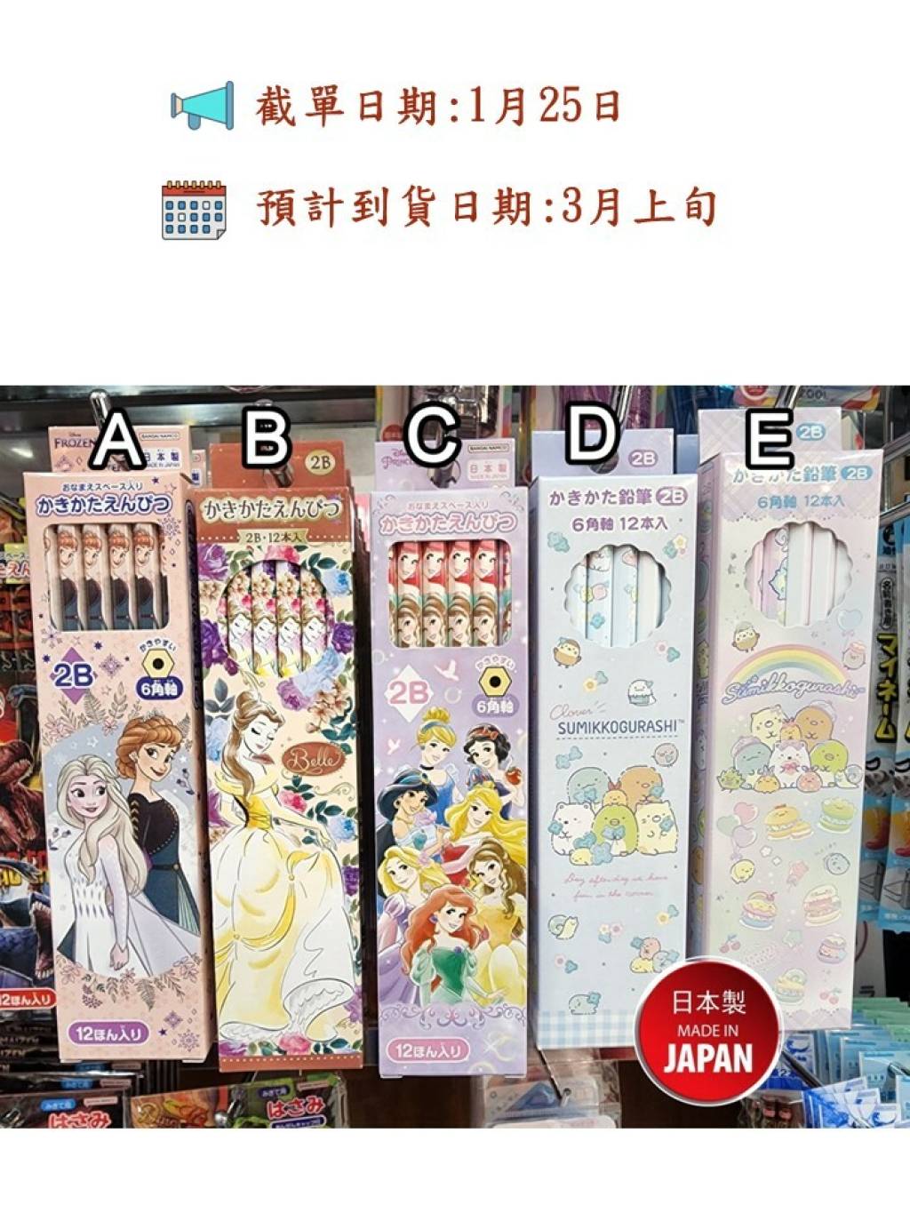 日本製卡通2B六角鉛筆12支裝