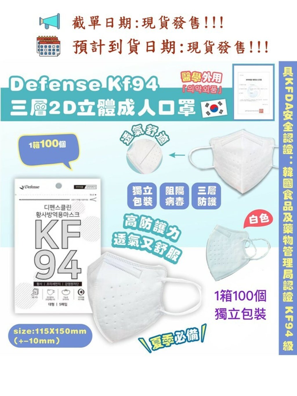 具KFDA安全認證:韓國食品及藥物管理局認證 KF94 級