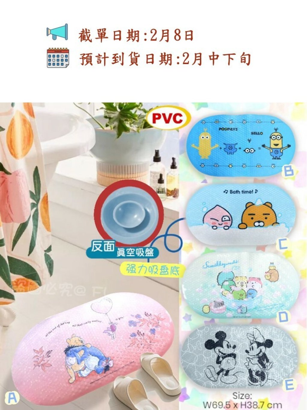 如家有老人家👵或小朋友👶🏻、特別推介呢款設有強力吸盤底👣浴室墊,防止沐浴時🛀滑倒或跌倒,💦清洗容易,仲係授權產品,❣️品質有保證🌟