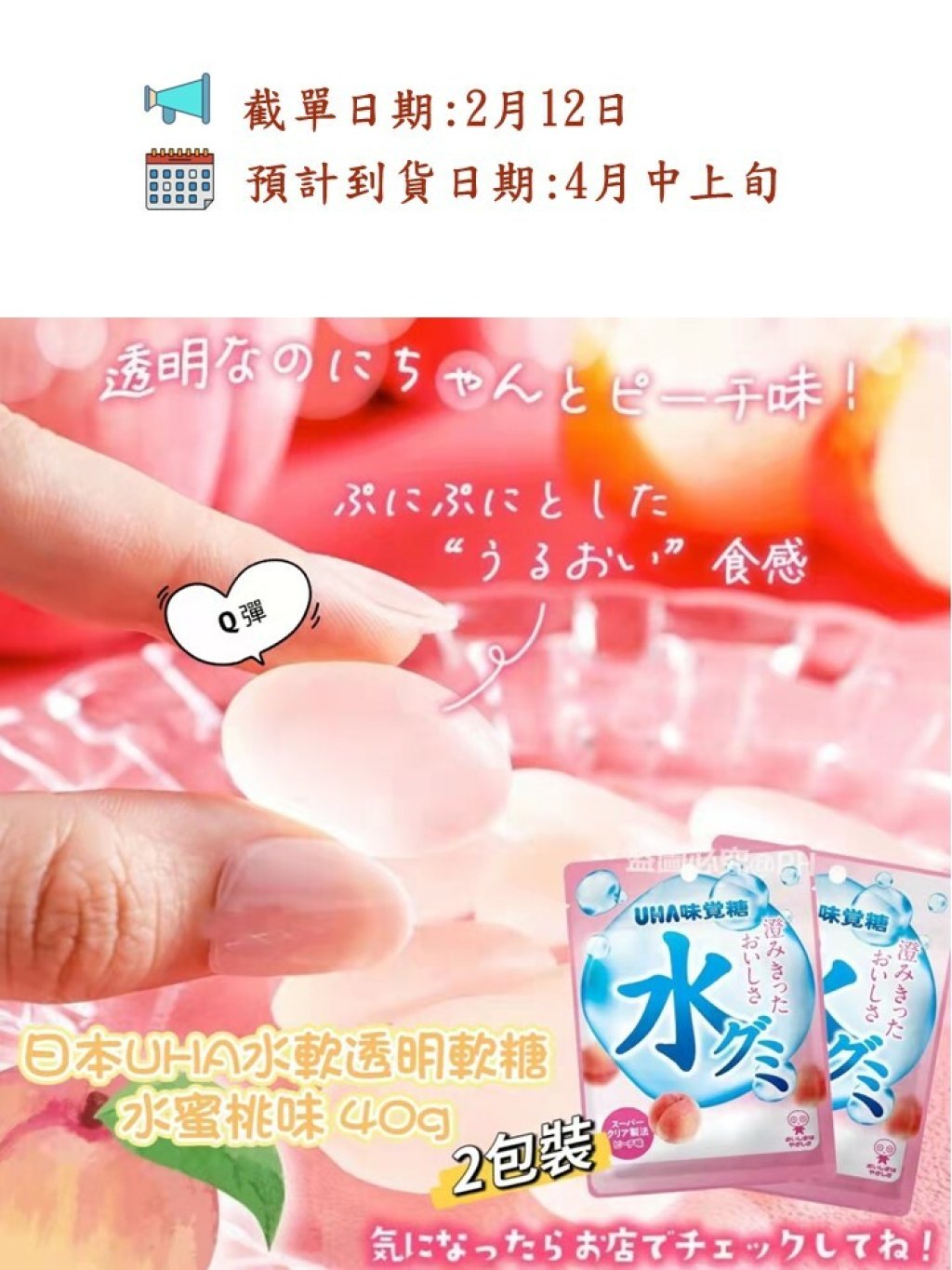 🎌日本UHA水軟透明軟糖水蜜桃味 40g (2包裝)🎌