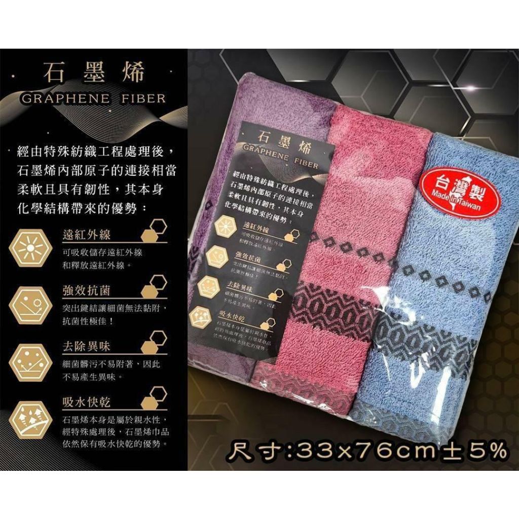 🟡台灣製造 遠紅外線-石墨烯蜂巢緞紋毛巾3入組🟡