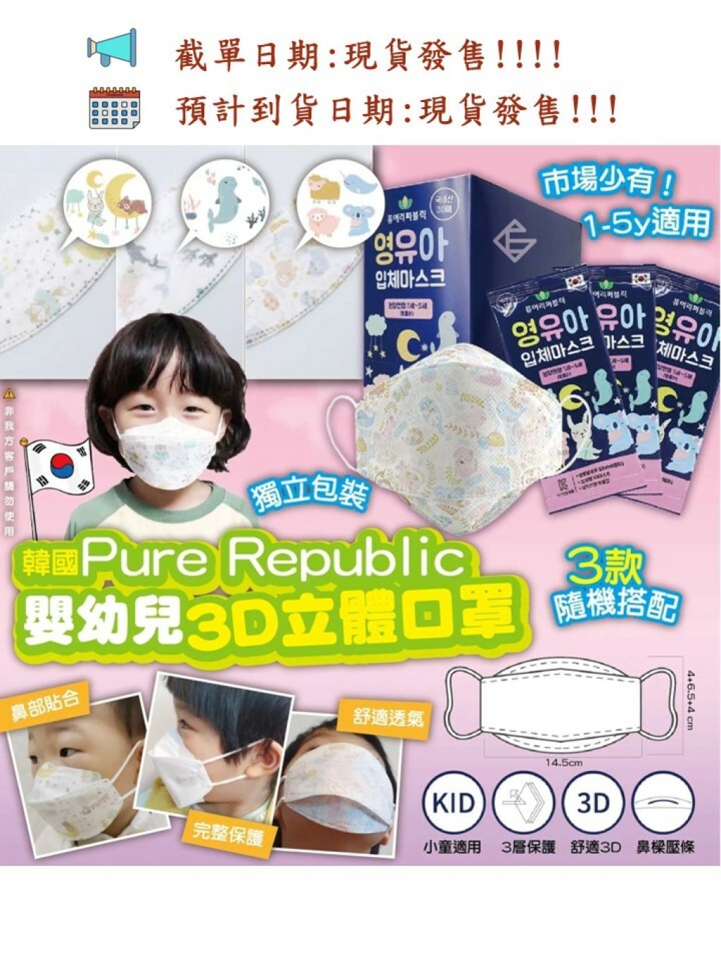 韓國🇰🇷Pure Republic 三層小童立體口罩(30個/盒)