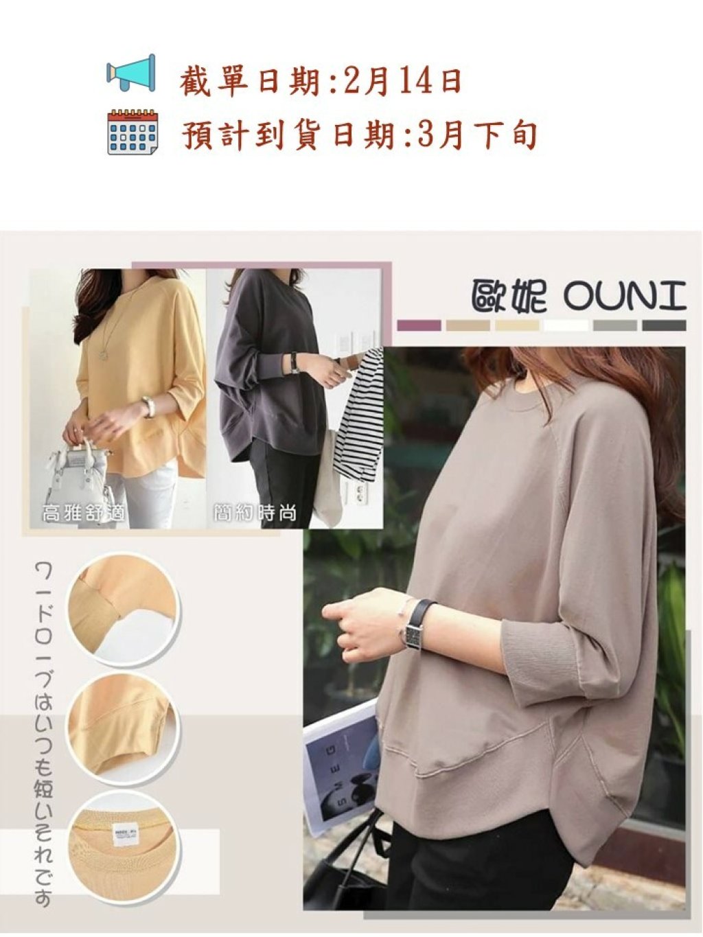 🟡台灣歐妮Ouni 落肩圓弧下擺素色衣🟡