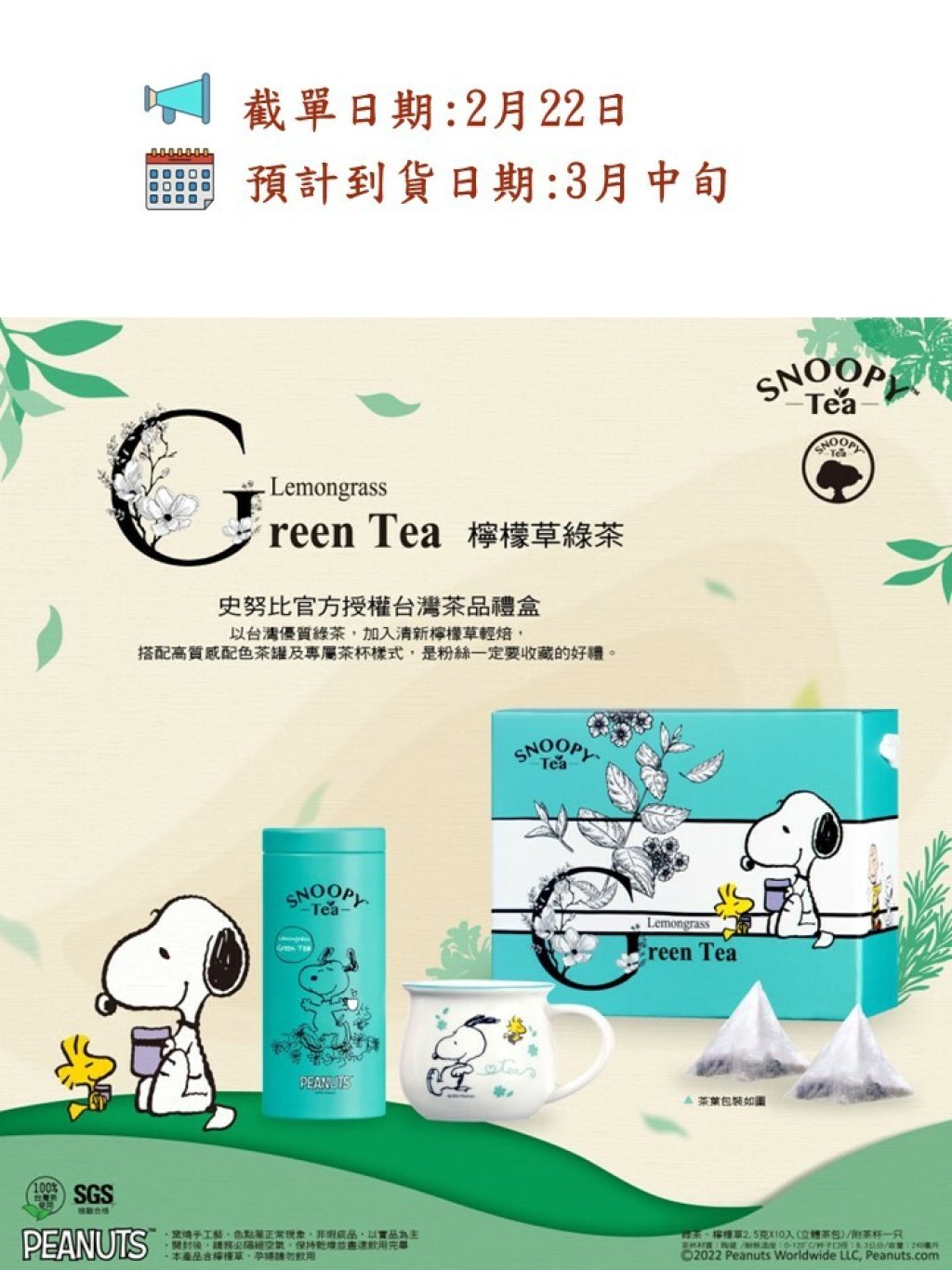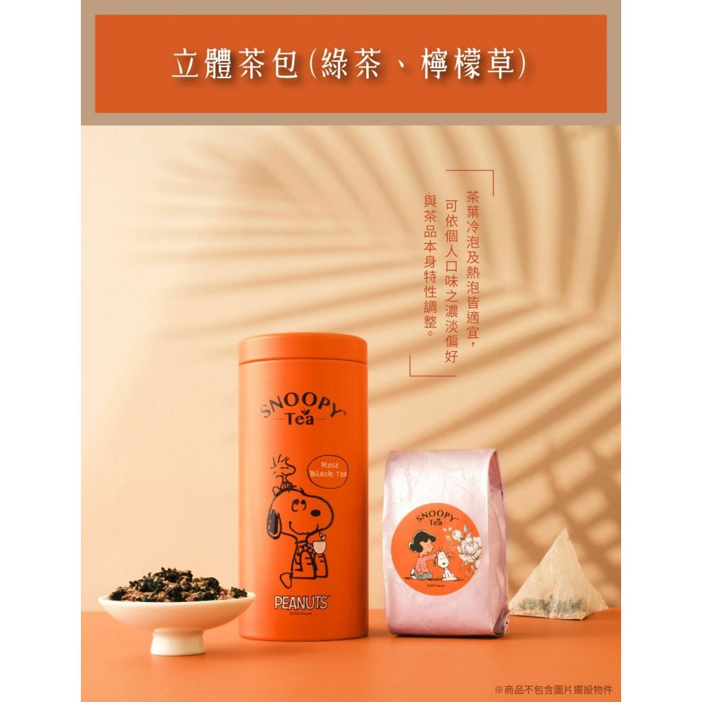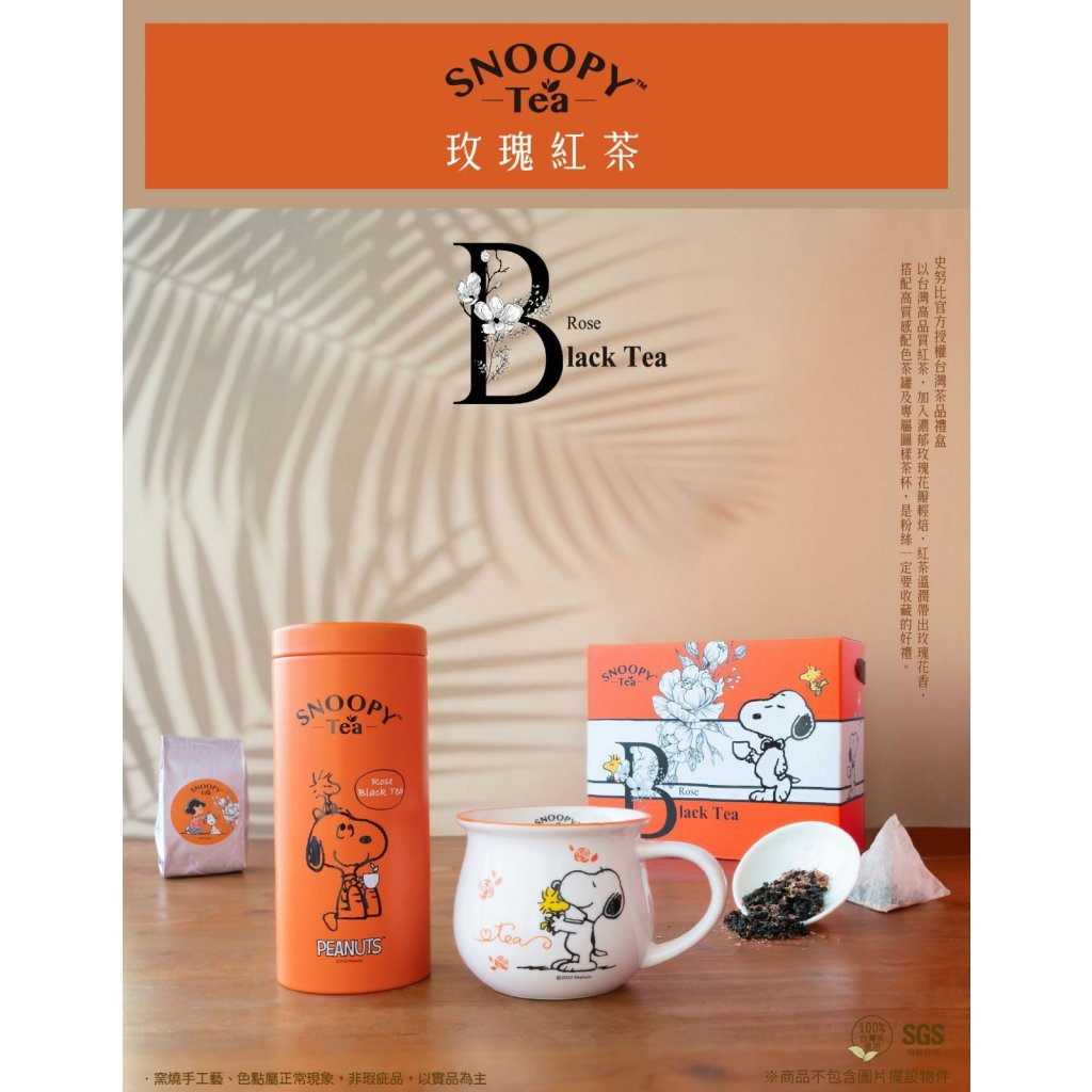 史奴比官方授權,採台灣茶製成,無論是玫瑰紅茶或是綠茶檸檬草,都附有高品質配色茶罐與專屬圖樣茶杯呦!