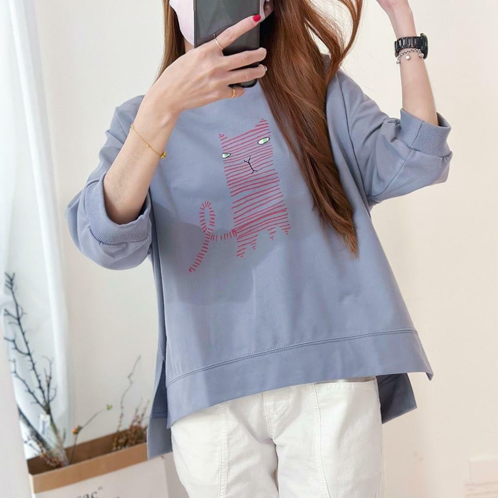 🟡台灣歐妮Ouni 補班好辛苦 眼神死厭世線條貓T🟡