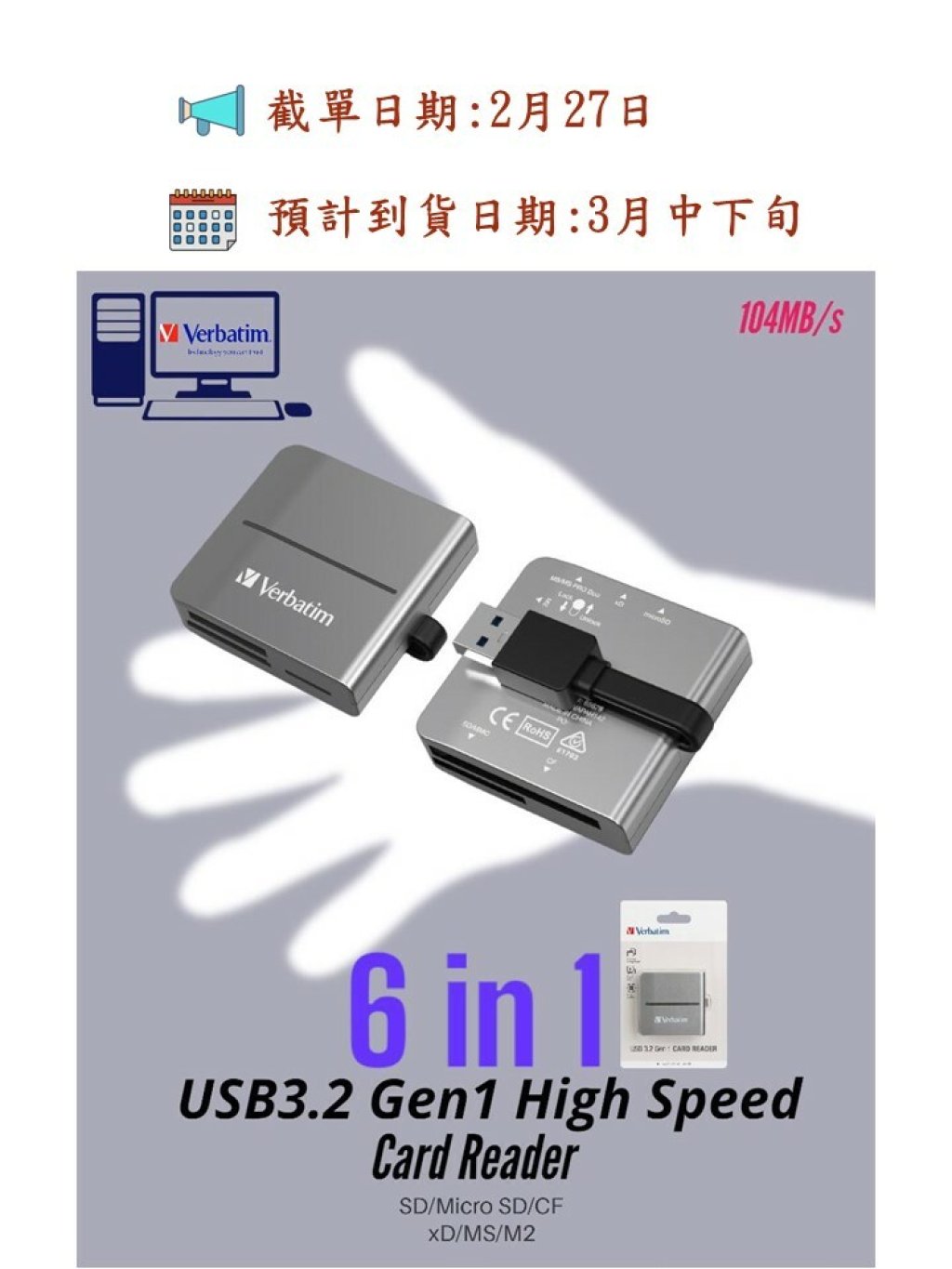 USB 3.2 Gen 1 讀卡器帶有 6 個插槽,用於連接不同類型的存儲卡,包括 SD 卡端口、microSD 卡端口、CF 卡端口、xD 卡端口、MS 卡端口和 M2 卡端口。