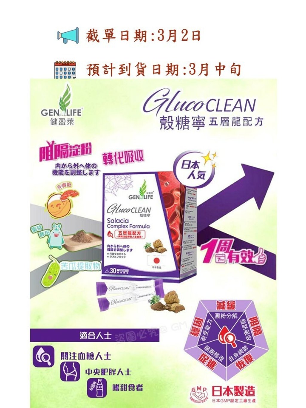 🟡GENforLIFE 健盈萊- 日本人氣 殼糖寧®️ 五層龍配方 (每盒30條)🟡