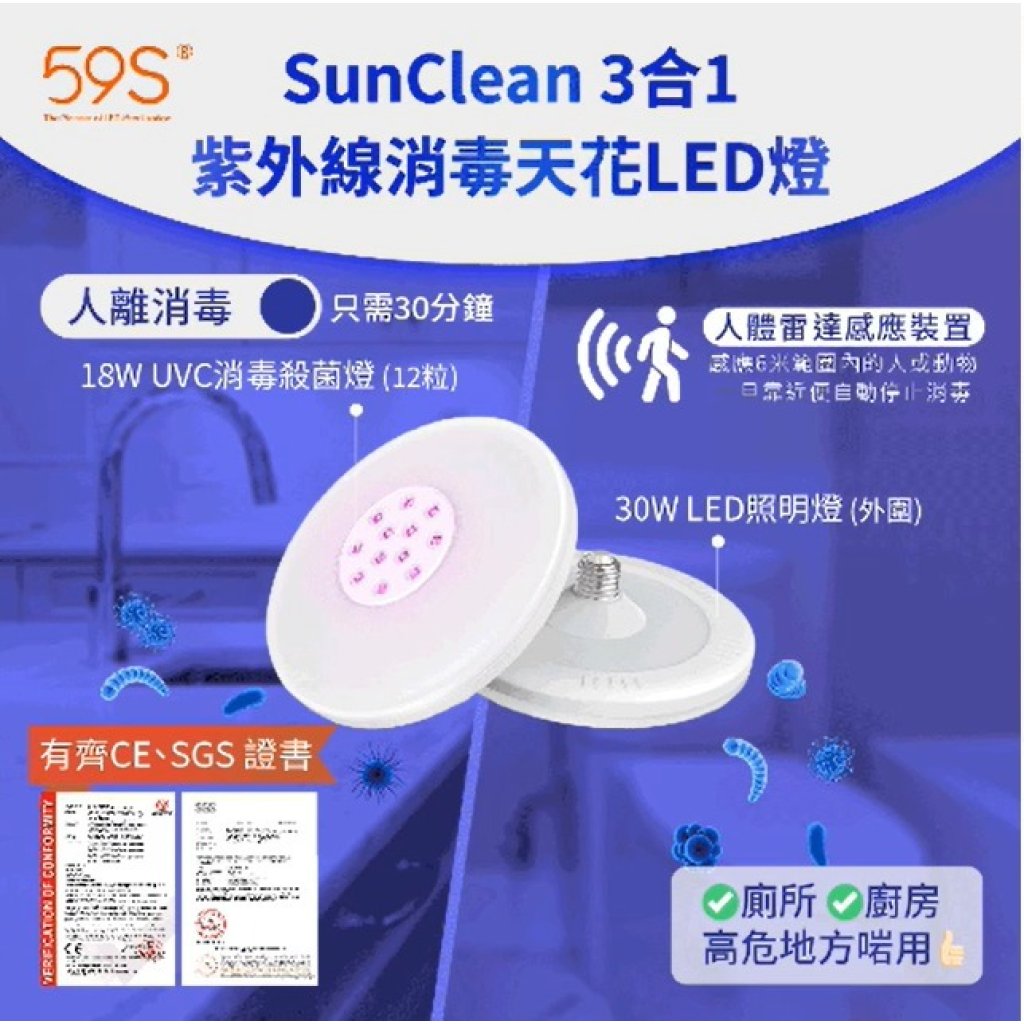 而59S Sunclean 消毒天花LED燈   助你輕鬆解決💯