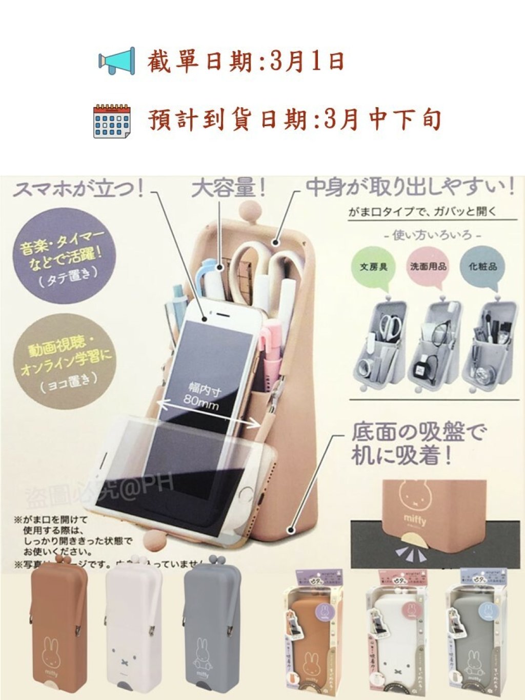 筆盒底部有吸盤🤭,借助空氣的力量吸附, 所以係唔會跌嘅筆袋 !手機橫豎放都可以,睇劇好方便😆。