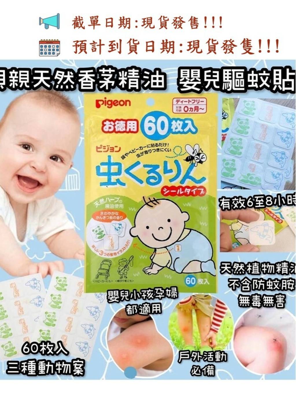 日本製🇯🇵Pigeon 初生嬰兒防蚊貼 (1包60片)