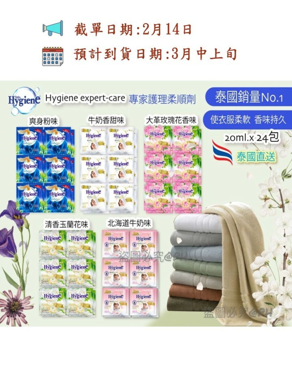 泰國直送🇹🇭Hygiene 銷售No. 1柔順劑 (獨立包裝)