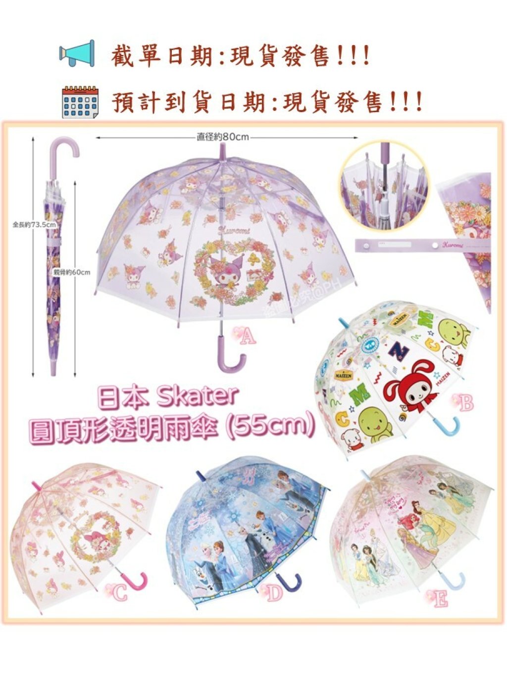 Skater 新出嘅呢款時尚卡通圓頂形、透明雨傘,超可愛🤩