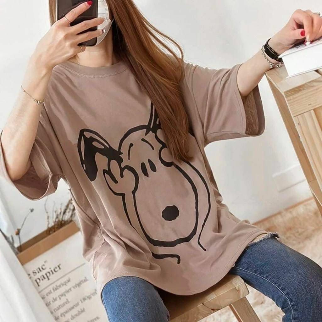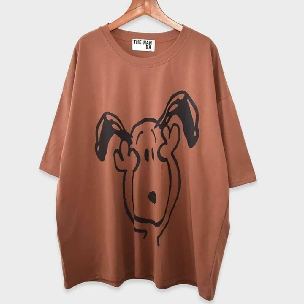😍歐妮Ouni 大地色捂頭史努比寬鬆T