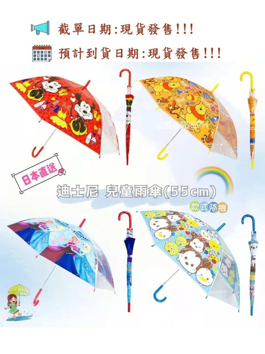 日本直送 迪士尼 兒童雨傘(55cm)