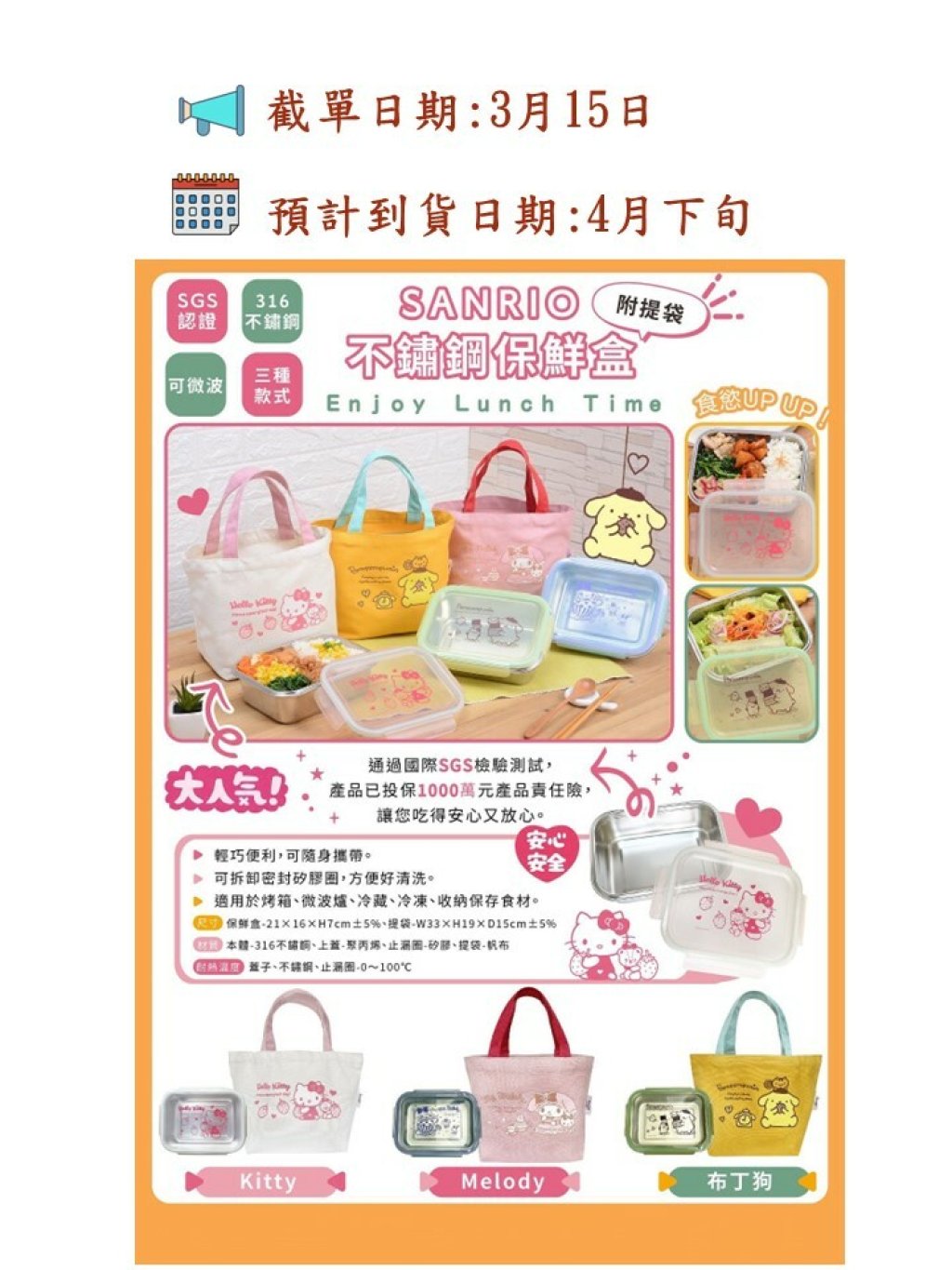 🟡台灣 Sanrio 316不鏽鋼便當盒+便當袋二件組🟡