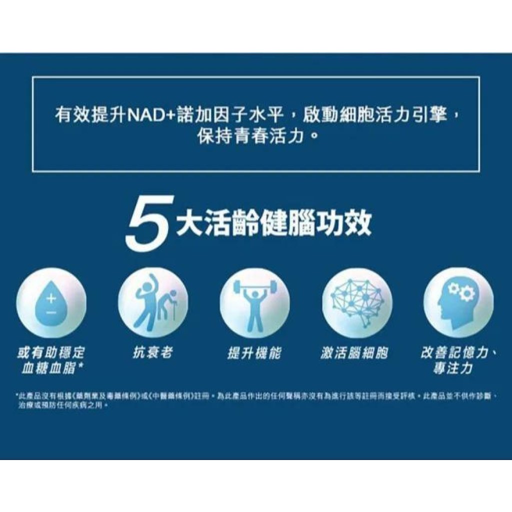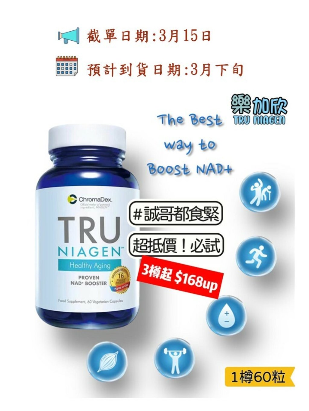 TRU NIAGEN可大大提升NAD+(諾加因子)的水平,諾加因子是人體細胞不可或缺的代謝物。TRU NIAGEN可提升機能、增強體力及修補肌肉,或可穩定血糖血脂等功能, 讓用戶逆齡抗衰老。