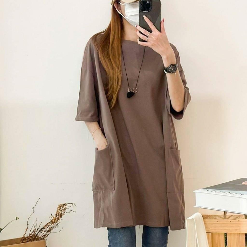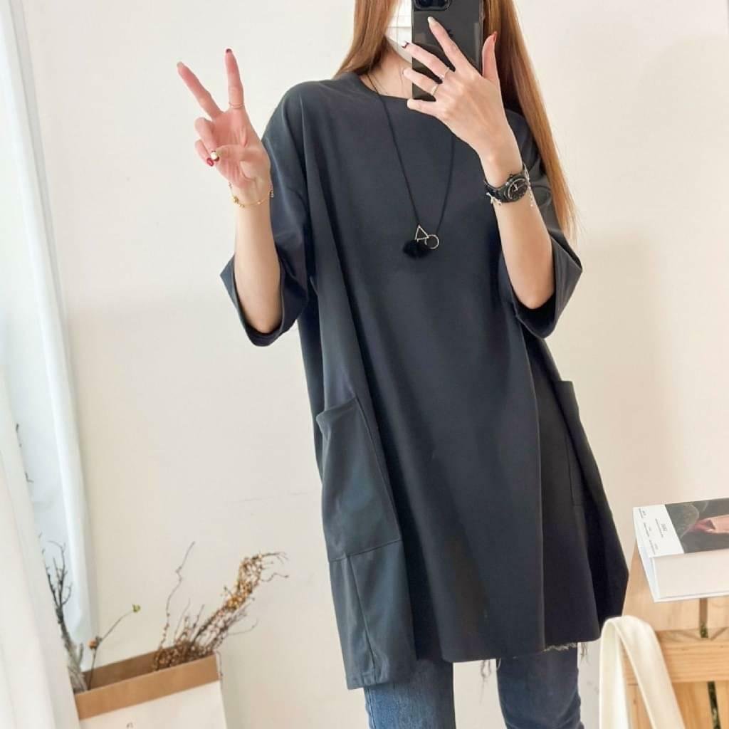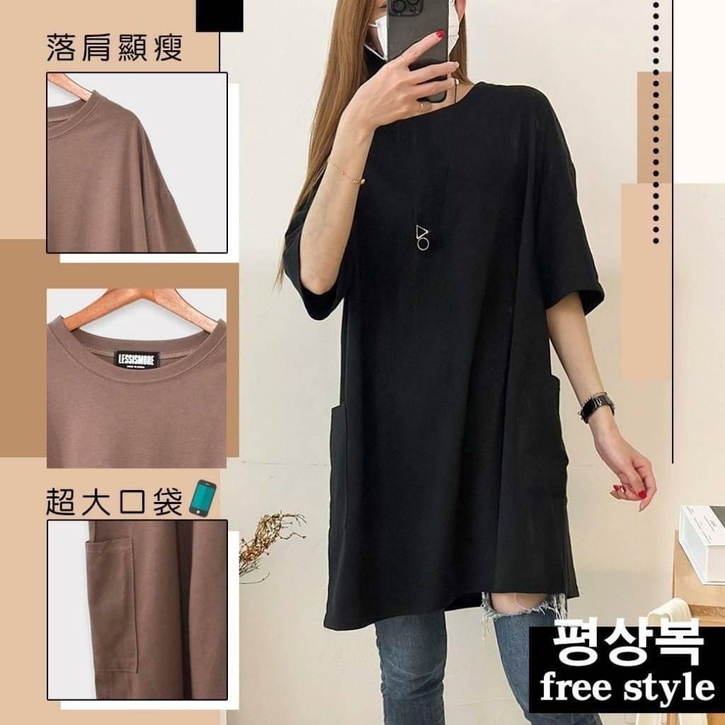 🟡台灣 歐妮 Ouni 素色落肩大口袋寬鬆長版T🟡