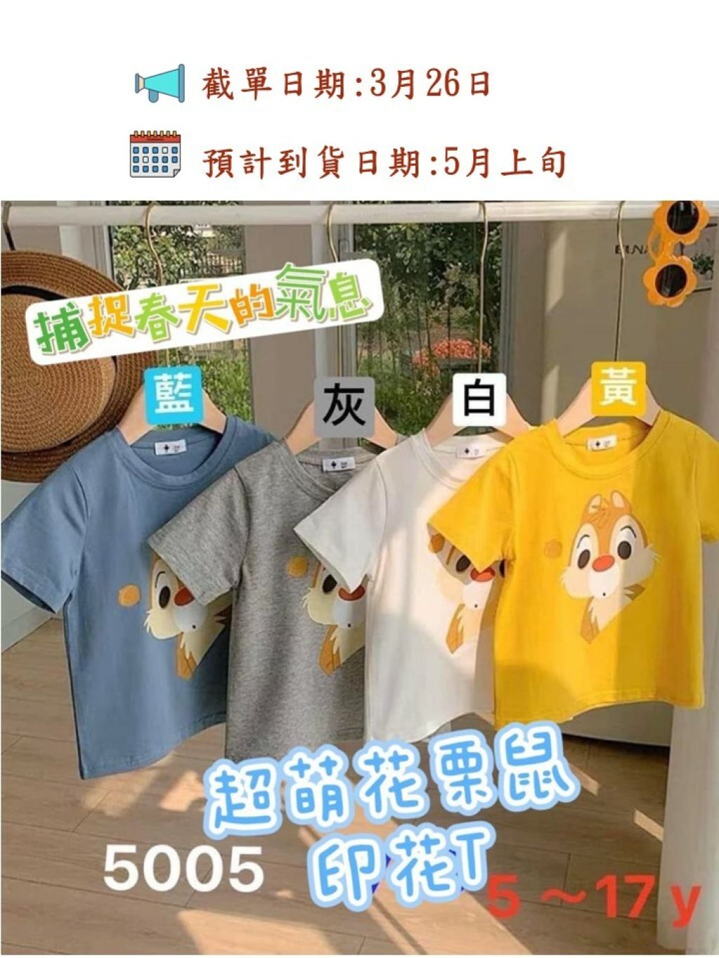 捕捉春天的氣息🌈【小童】超萌花栗鼠印花T