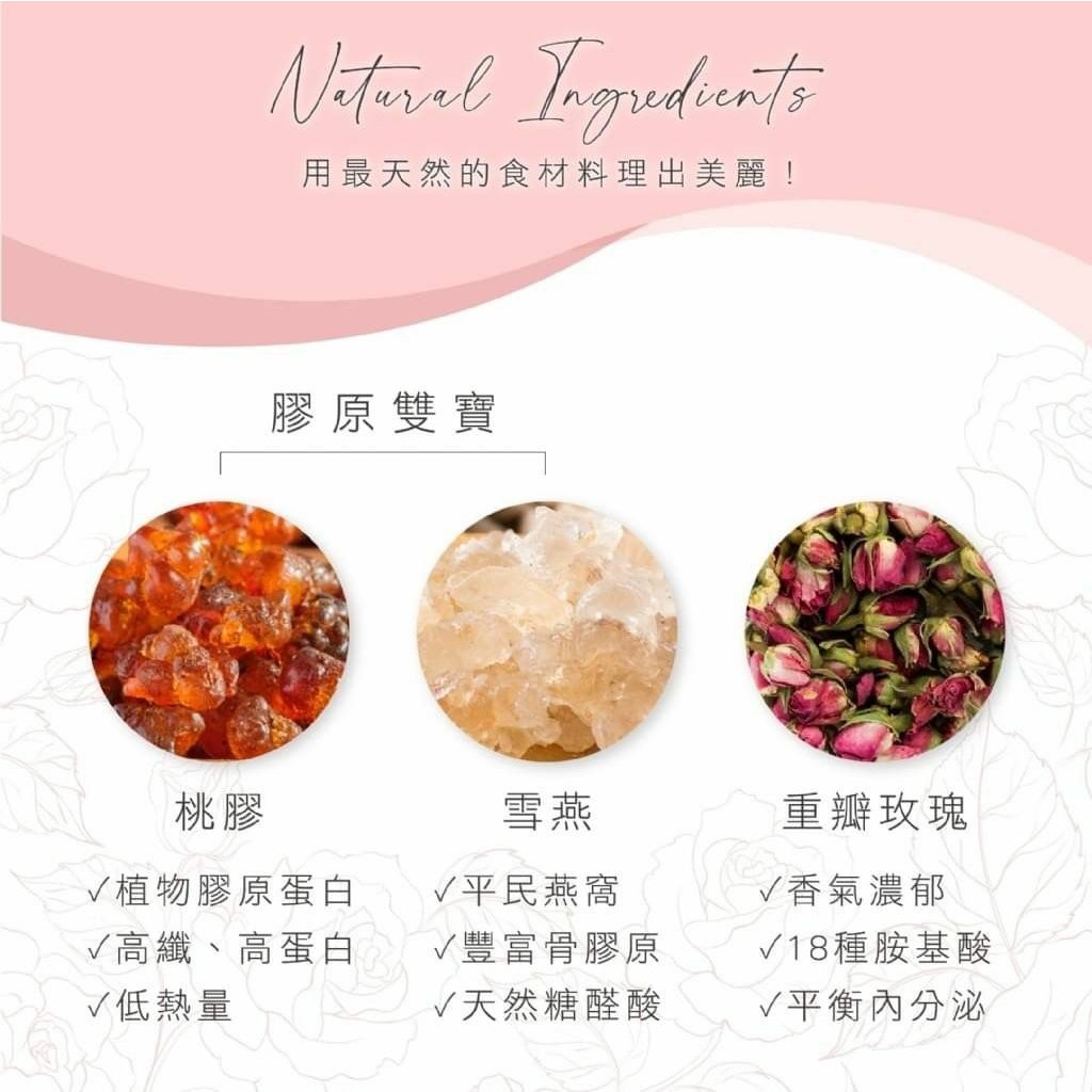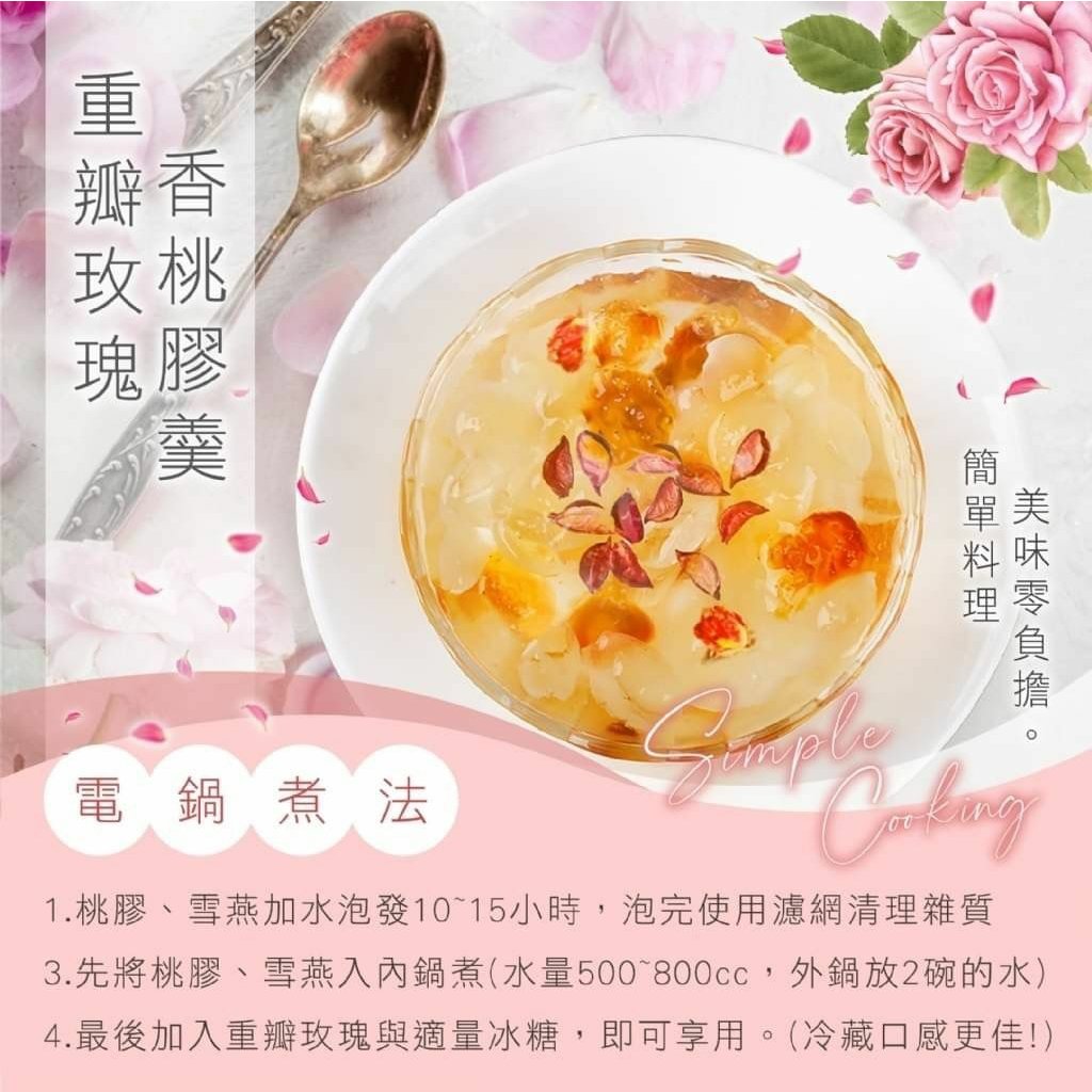 產地:玫瑰(伊朗)、桃膠(中國)、雪燕(中國)、台灣包裝