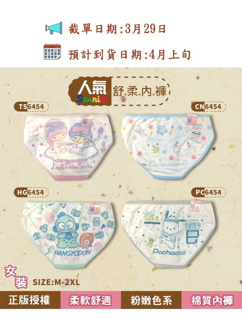 🟡Sanrio 新款成人女裝舒柔內褲🟡