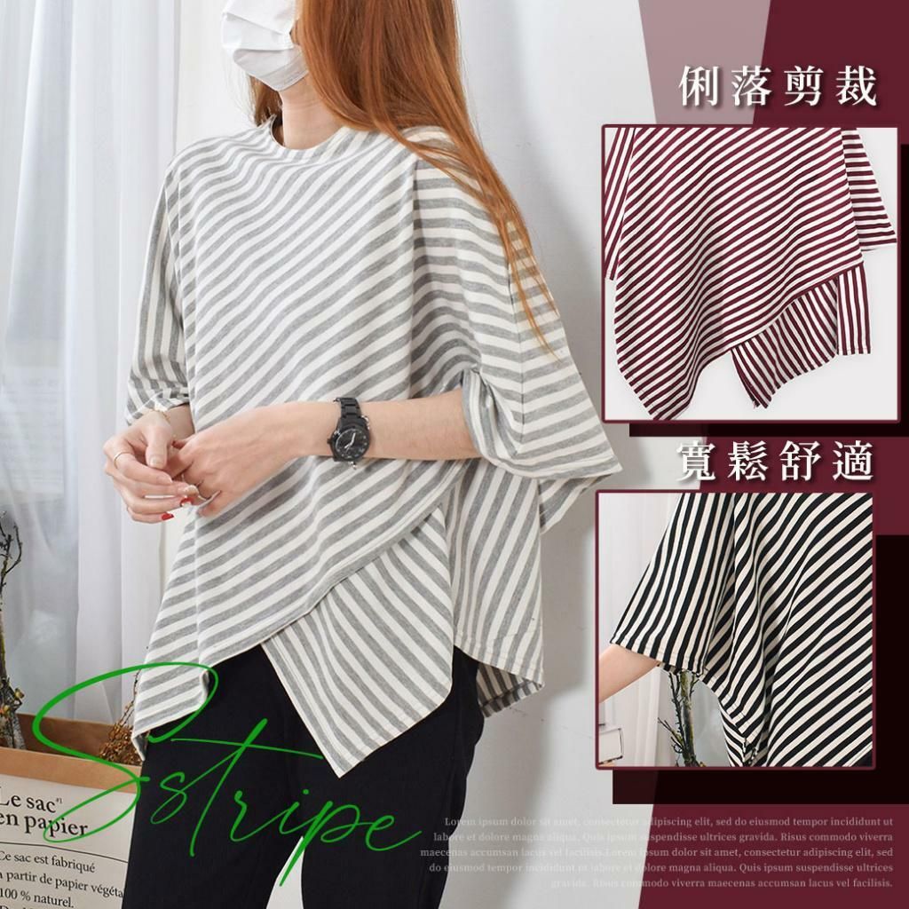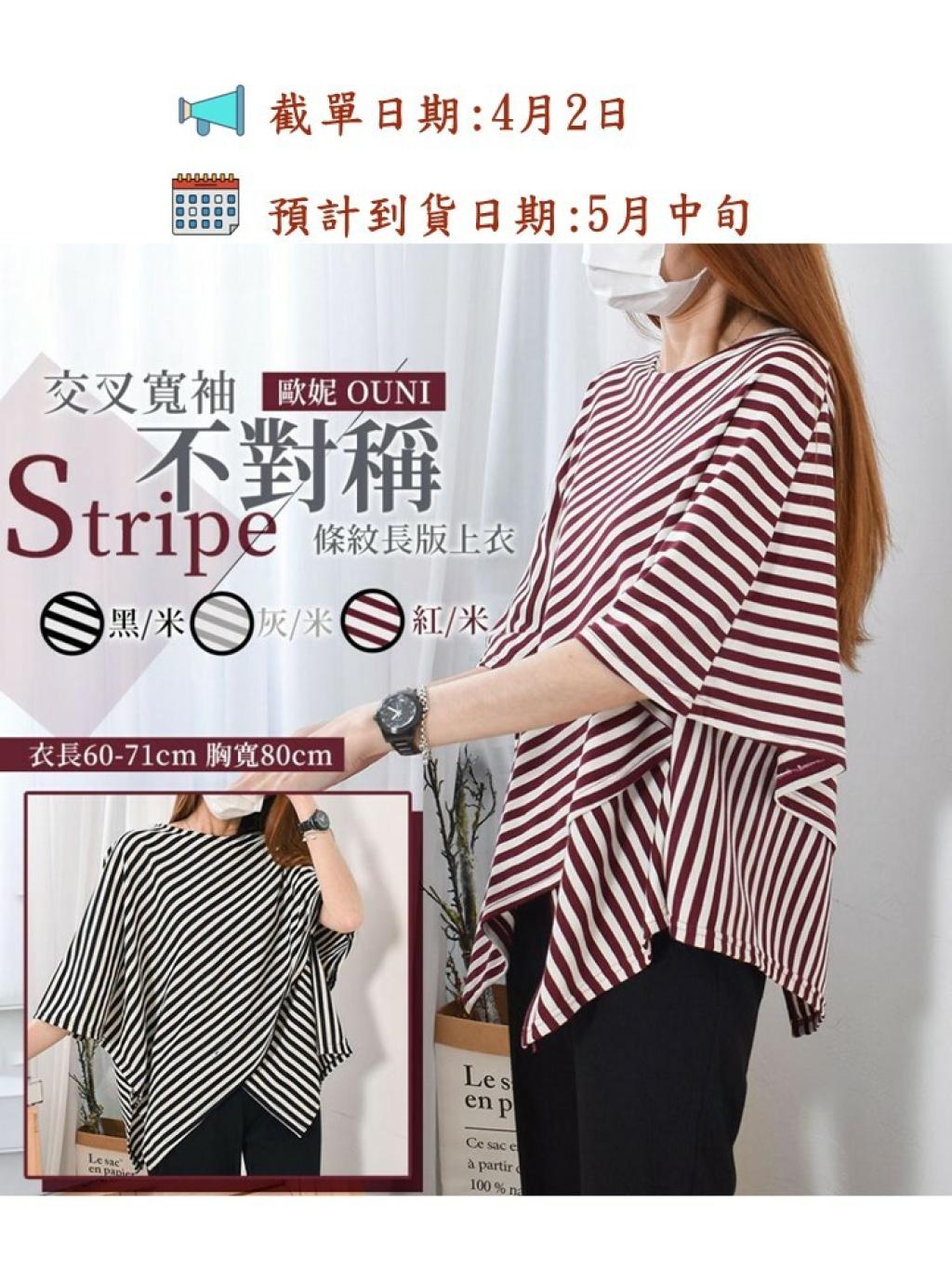 🟡台灣 歐妮 Ouni 交叉寬袖不對稱條紋長版上衣🟡