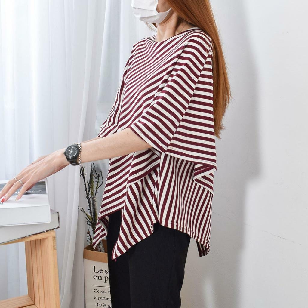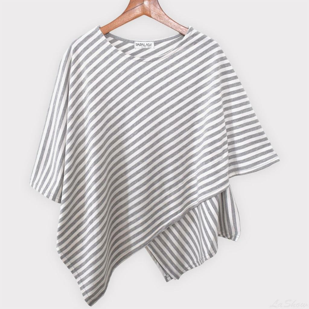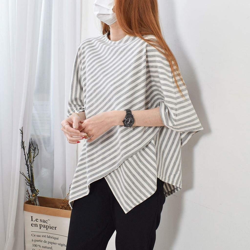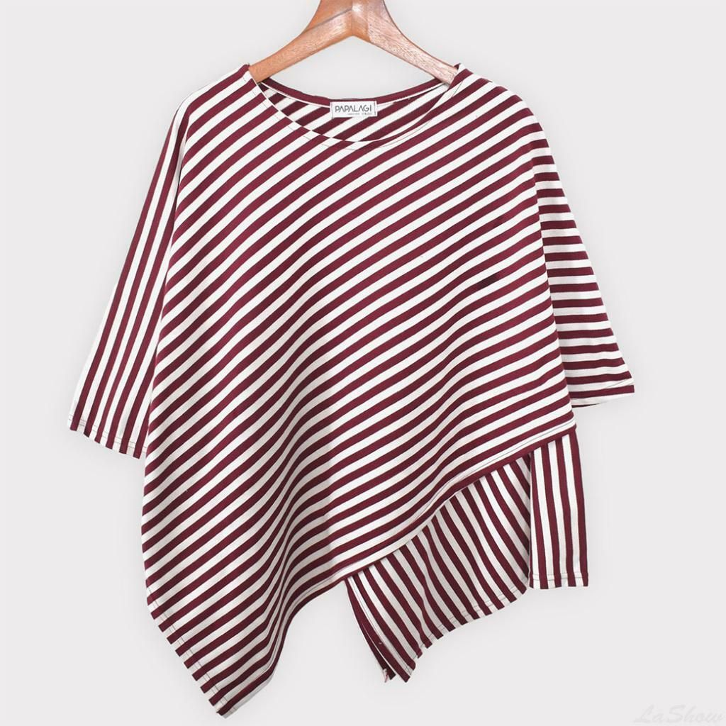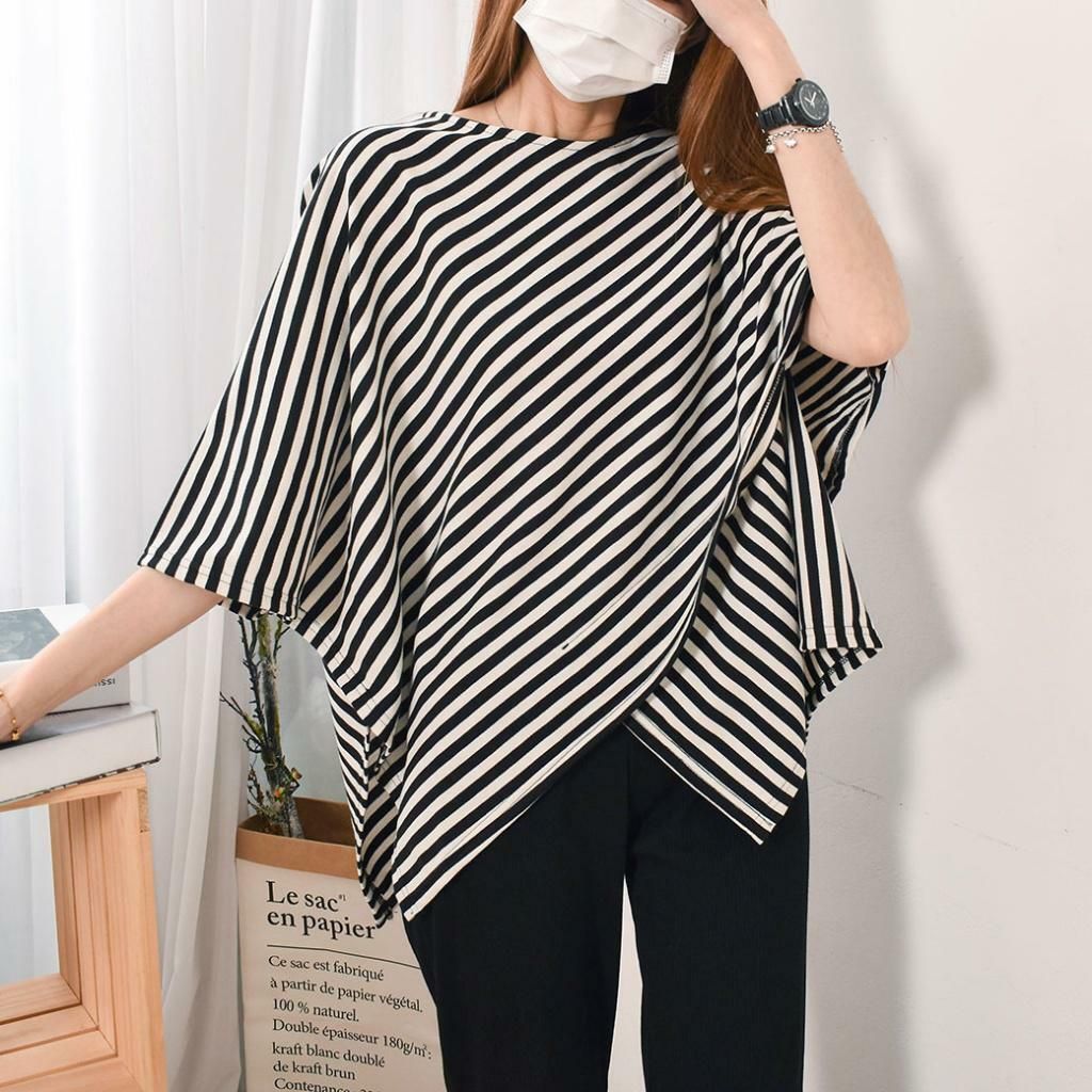台灣 歐妮 Ouni 交叉寬袖不對稱條紋長版上衣