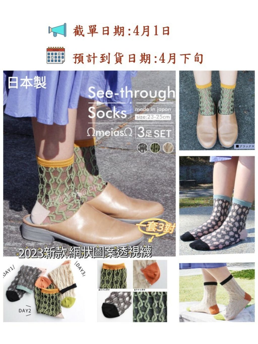 🎌日本製 2023新款 網狀圖案透視襪 (一套 3對)🎌